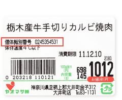 該当店でお買い求めいただいた黒樺牛(黒毛和牛)、芳賀の黒牛 (交雑牛)のパックシールに表示している個体識別番号 (10ケタ番号) にてお手元の牛肉の生産履歴を確認することができます。ご利用ください。